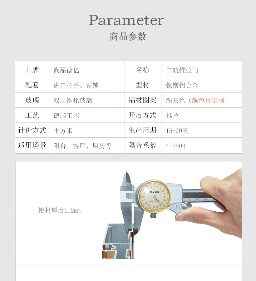 1.2mm铝合金二轨推拉门